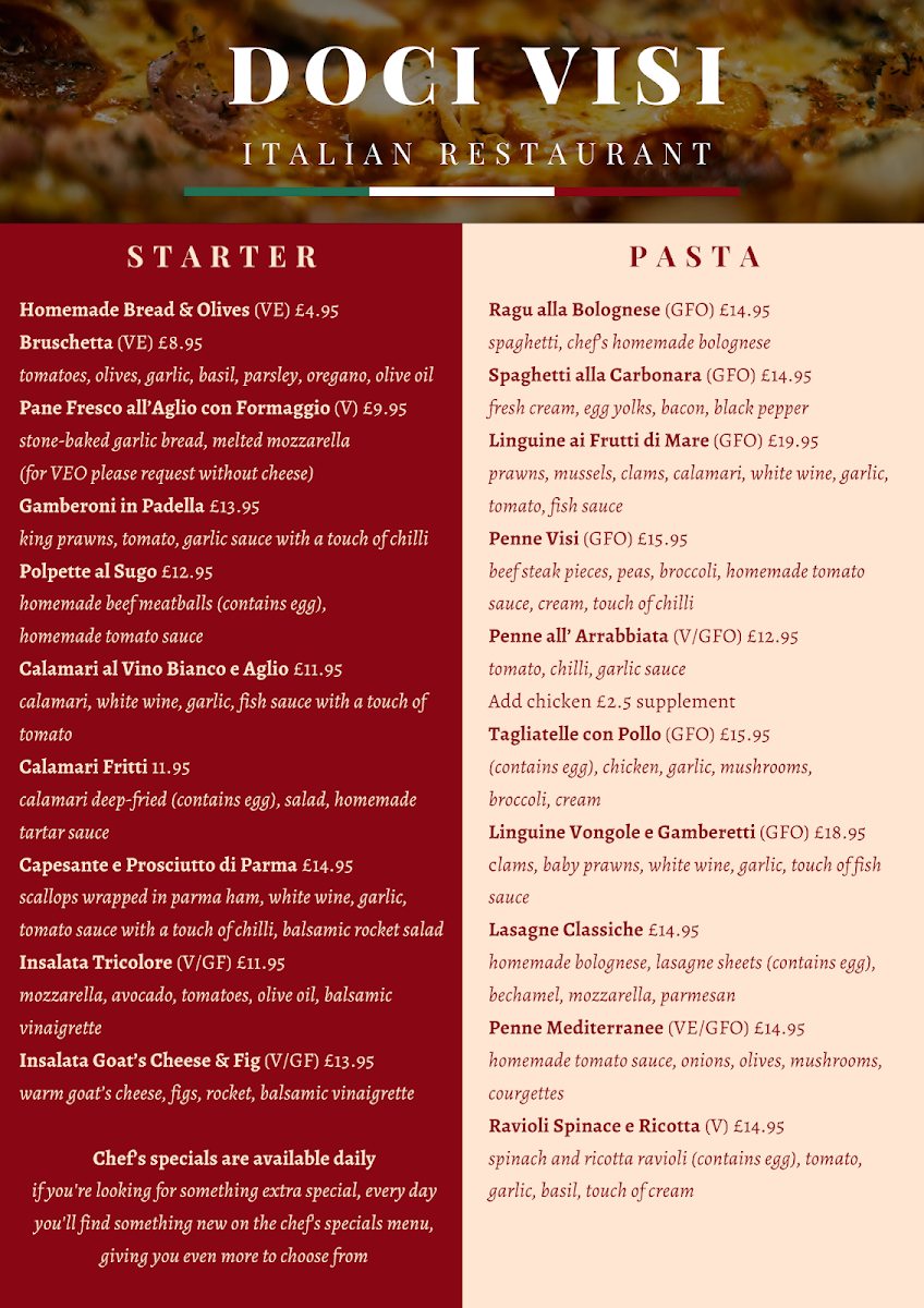Nestled in the heart of Brentwood, Doci Visi at 1 South St, CM14 4BJ, offers a truly refined culinary journey that artfully blends modern European flavors with contemporary presentation. The Doci Visi Menu is an impressive display of culinary creativity, showcasing high-quality ingredients, seasonal twists, and masterful execution in every dish.